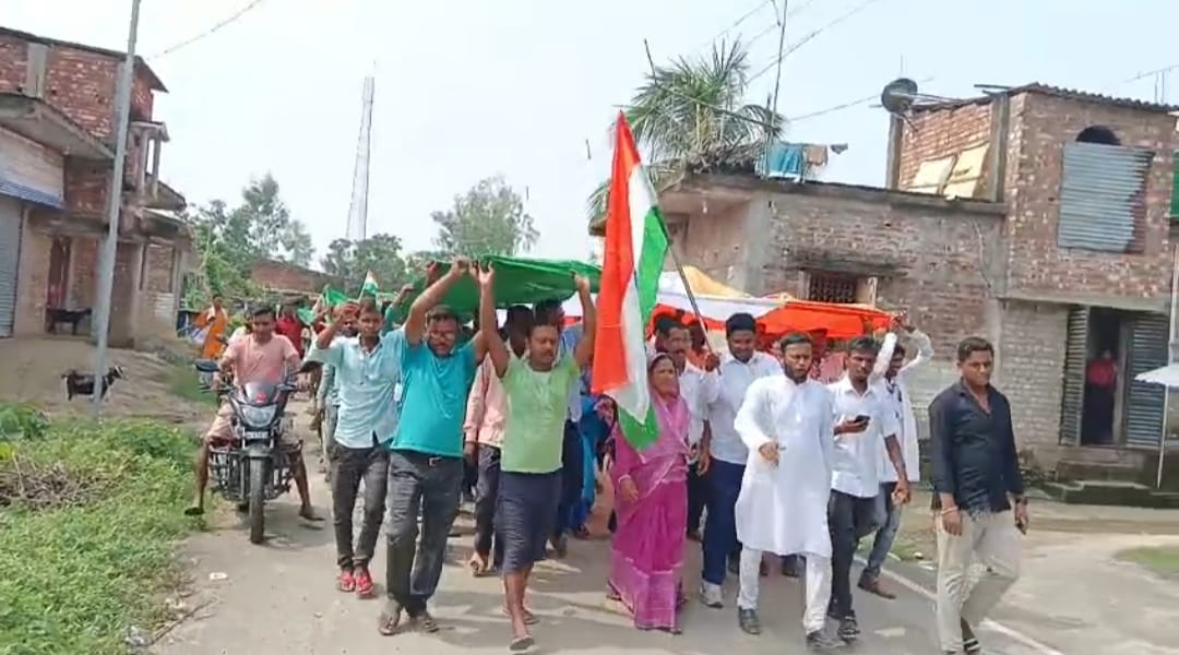 আজ ৭৭ তম স্বাধীনতা দিবস তাই ৭৭ ফুটের একটি জাতীয় পতাকা নিয়ে বিশাল রেলি করেন গোকর্নো অঞ্চলের জনসাধারণরা।