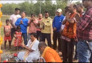 গঙ্গারামপুর ২১শে সেপ্টেম্বর দক্ষিণ দিনাজপুর :—––একটি অনুষ্ঠানের মধ্য দিয়ে খুঁটি পূজার মধ্য দিয়ে দুর্গাপূজার প্যান্ডেল, প্রতিমা তৈরির কাজের সূচনা হল। দক্ষিণ দিনাজপুর জেলার গঙ্গারামপুর পৌরসভা ৭ নম্বর ওয়ার্ডের ডাক বাংলোপাড়ার দুর্গাপুজোর খুঁটি পূজার মধ্য দিয়ে কাজের সূচনা হয়।তাদের দুর্গাপুজো এবারে ১৫ বছরে পা দিল বলে জানালেন পুজো কমিটির সম্পাদক সহ উদ্যোক্তারা।পুজো নিয়ে থাকবে বিশেষ অনুষ্ঠানও। গঙ্গারামপুর পৌরসভা ৮নম্বর ওয়ার্ডের ডাকবাংলো পাড়ার এবছরের দুর্গাপুজো ১৫বছরে পা দিল। প্রতিবছরই ডাকবাংলা পাড়ার দুর্গাপুজো ভক্তি নিষ্ঠার পাশাপাশি বিভিন্ন অনুষ্ঠানের মধ্য দিয়ে এলাকার বাসিন্দারা তাদের এই পুজো করে থাকে। এবছরের পুজো কমিটি সম্পাদক হয়েছেন সাংবাদিক তথা সমাজসেবী চয়ন হোড়, সভাপতি হয়েছেন প্রাক্তন শিক্ষক রণধির ব্যানার্জি। বৃহস্পতিবার শুভদিনে একটি অনুষ্ঠানের মধ্য দিয়ে পুরোহিতের মন্ত্র উচ্চারণ ও ঢাকের বাজনা মধ্য দিয়ে দুর্গাপুজোর কাজের সূচনা হলো খুঁটি পূজার মধ্য দিয়ে।গঙ্গারামপুর পৌরসভার ৭ নম্বর ওয়ার্ডের ডাকবাংলা পাড়ার দুর্গাপূজার ১৫ বছর পূর্তি উপলক্ষে খুঁটি পুজোর মাধ্যমে পূজোর সূচনা করেন সাংবাদিকতা তথা পুজো কমিটি সম্পাদক চয়ন হোড় , সভাপতি রনধীর ব্যানার্জি,বুনিয়াদপুর মহকুমা আদালতের বিশিষ্ট আইনজীবী রঞ্জন পান্ডে, প্রাক্তন শিক্ষক নারায়ণ সরকার,তাপস রায়, ব্যবসায়ী গণেশ সাহা, উদয় সরকার,দীপু বিশ্বাস সহ আরো অনেকেই। এবিষয়ে সাংবাদিক তথা ডাকবাংলোপাড়া দুর্গাপূজা কমিটির সম্পাদক চয়ন হোড় জানিয়েছেন , ভক্তি নিষ্ঠার পাশাপাশি বিভিন্ন অনুষ্ঠানের মধ্য দিয়ে আমাদের এই পুজো এবছর ১৫তম বর্ষে পা দিয়েছে।খুঁটি পূজার মধ্যে দিয়ে প্যান্ডেল ,প্রতিমা কাজের সূচনা করা হলো।পুজো নিয়ে থাকছে আমাদের বিশেষ অনুষ্ঠানও । ডাকবাংলো পাড়া পুজো কমিটির অন্যতম সদস্য নারায়ন সরকার জানিয়েছেন,মায়ের কাছে আমরা সব সময় প্রার্থনা করি যে, মা যেন সবাইকে ভালো রাখে। বিপদ আপদ কেটে যায় সেই কামনাই করা হয় মায়ের কাছে। এবছরও যে ডাকবাংলো পাড়া ১৫তম বর্ষের দুর্গাপুজো সকলের কাছে আকর্ষণের কেন্দ্রবিন্দু হয়ে উঠবে সে বিষয়ে বলার অপেক্ষা রাখে না
