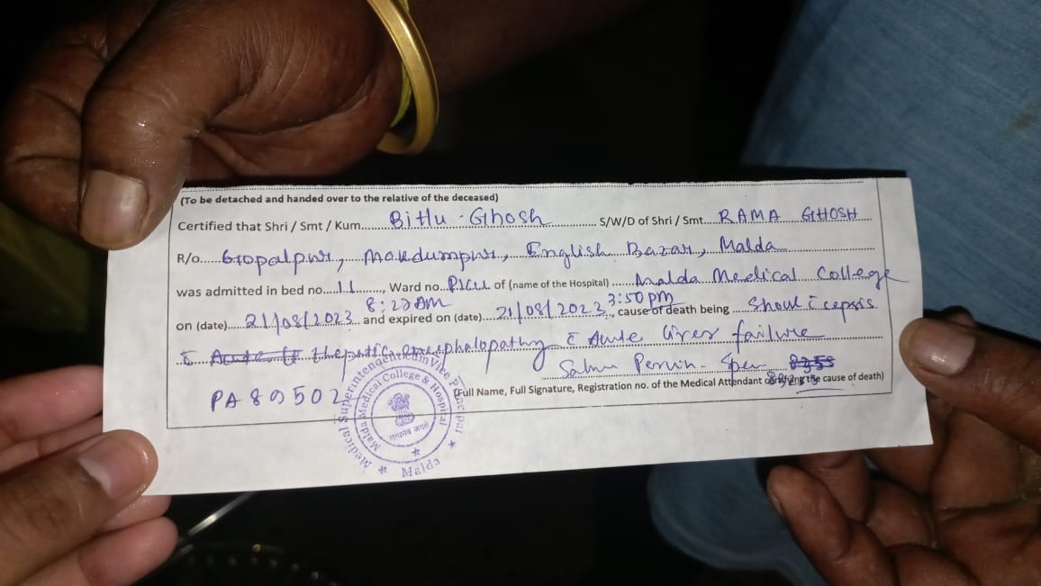 মালদা-। মৃত ওই স্কুল ছাত্রের নাম বিট্টু ঘোষ বয়স(৯)বছর। বাড়ি মালদা জেলার ইংরেজবাজার থানার অন্তর্গত গোপালপুর এলাকায়।মৃত স্কুল ছাত্রের পরিবারের রয়েছে বাবা রামা ঘোষ,মা জুগনী ঘোষ। বিট্টুরা এক ভাই এক বোন। বিট্টু স্থানীয় গোপালপুর প্রাথমিক বিদ্যালয় তৃতীয় শ্রেণীতে পড়াশোনা করতো বলে জানা যায়। স্থানীয় ও পরিবার সূত্রে জানা গেছে বিগত চার দিন ধরে ওই স্কুল ছাত্রের প্রচন্ড জ্বর ও সঙ্গে বমি। অবশেষে জ্বরের মাত্রা অধিক হওয়ায় সোমবার দুপুর দুটো নাগাদ বিট্টু নামে ওই স্কুল ছাত্রকে মালদা মেডিকেল কলেজ হাসপাতালে ভর্তি করা হয়। অবস্থার অবনতি হওয়ায় ওই স্কুল ছাত্রকে সঙ্গে সঙ্গে মালদা মেডিকেল কলেজ হাসপাতালে চিকিৎসকেরা PICU(Pediatric intensive care unit) ওয়ার্ডে চিকিৎসার জন্য স্থানান্তর করে। অবশেষে চিকিৎসা চলাকালীন সন্ধ্যা নাগাদ মৃত্যু হয় ওই স্কুল ছাত্রের। পরিবারের কাছ থেকে জানা যায় ওই স্কুল ছাত্রের রক্তের প্লাটিলেট একেবারে কমে গিয়েছিল পাশাপাশি ডেঙ্গুর যেসব লক্ষণ সমস্ত শরীরে ছিল বলে পরিবারের সদস্যদেরকে জানিয়েছিলেন কর্মরত চিকিৎসকেরা। পরিবারের সদস্যদেরকে বলা হয়েছিল রক্তের যোগান দিতে। পরিবারের সদস্যরা সেই মতো মালদা মেডিকেল কলেজ হাসপাতালে ব্লাড ব্যাঙ্কে গিয়েছিল কিন্তু সেইখানে প্রায় দু ঘন্টা দাঁড়িয়ে থাকার পরেও রক্তের কোন সন্ধান পাননি বলে জানান। অবশেষে মৃত্যুর খবর পেতেই কান্নায় ভেঙে পড়েন মৃত স্কুল ছাত্রের মা জুগনী ঘোষ, বাবা রামা ঘোষ সহ পরিবারের অন্যান্য সদস্যরা। যদিও মেডিকেল কলেজের পক্ষ থেকে মৃতদেহ পরিবারের হাতে দেওয়ার সময় ডেট সার্টিফিকেটে ডেঙ্গু উল্লেখ না থাকলেও অজানা জ্বরেই মৃত্যু হয়েছে ওই স্কুল ছাত্রের এমনটাই লেখা রয়েছে।