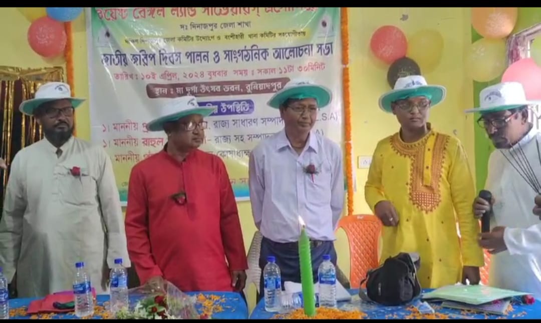 জাতীয় জরিপ দিবস উপলক্ষে দক্ষিণ দিনাজপুর জেলার বুনিয়াদপুরে বুধবার দুপুর নাগাদ ওয়েস্ট বেঙ্গল ল্যান্ড সার্ভেয়ারস এসোসিয়েশনের পক্ষ থেকে করা হয় সাংগঠনিক আলোচনা সভা। প্রতাকা উত্তোলনের মধ্য দিয়ে এদিনের এই অনুষ্ঠান শুরু করা হয়। এই অনুষ্ঠানে মধ্য দিয়ে দক্ষিণ দিনাজপুর জেলার সমস্ত আমিনরা একত্রিত হয়ে একে অপরের সঙ্গে সু সম্পর্ক তৈরি করে। এছাড়াও আমিন জীবীদের জীবিকা নির্বাচনের সুবিধা অসুবিধা কথা তুলে ধরা হয়। কিছু ক্ষেত্রে দেখা যায় আমিনরা সাধারণ মানুষদের পরিষেবা দেবার সময় অনেক সমস্যা সম্মুখীন হতে হয় সেই সমস্ত বিষয় নিয়েও করা হলো আলোচনা। সরকারি ভাবে যাদের এখনও আমিনজীবী লাইসেন্স করা হয়নি তা কিভাবে করা যেতে পারে সে সমস্ত বিষয় নিয়ে করা হলো আলোচনা। এছাড়াও বিভিন্ন রকম সুবিধা অসুবিধা কথা তুলে ধরা হয়। এছাড়াও আগামীতে কিভাবে সকলে একত্রিত হয়ে কাজ করে গেলে সুবিধা হবে সে বিষয় নিয়ে আলোচনা করা হয়। এ দিনের এই অনুষ্ঠানে উপস্থিত ছিলেন দক্ষিণ দিনাজপুর জেলার একাধিক আমিন জীবীরা।