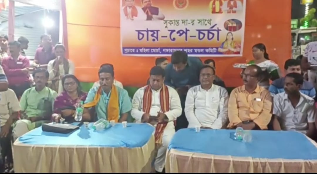 গঙ্গারামপুর বিজেপির টাউন মহিলা মোচার মণ্ডল কমিটির উদ্যাগে গঙ্গারামপুর হাইরোড়ে চায়ে পে চচায় যোগদান করলেন ডক্টর সুকান্ত মজুমদার, অনুষ্ঠানে ভিড় হল ভালোই