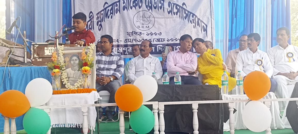 গঙ্গারামপুর ৩ডিসেম্বর দক্ষিণ দিনাজপুর ————————— বিভিন্ন অনুষ্ঠানের মধ্য দিয়ে বিপ্লবী ক্ষুদিরাম বসুর ১৩৪ জন্মদিন পালন করা হলো। দক্ষিণ দিনাজপুর জেলার গঙ্গারামপুর শহরের ৬নম্বর ওয়ার্ডের হাইরোড এলাকায় বিপ্লবী ক্ষুদিরাম মার্কেট ট্রেডার্স অ্যাসোসিয়েশনের তরফে দিনটি পালন করা হয়।প্রভাত ফেরী বস্ত্রদান, ও সাংস্কৃতিক অনুষ্ঠানের মধ্য দিয়ে এই দিনটি পালন করা হয়। সেখানে পৌরসভার চেয়ারম্যান ,ভাইস চেয়ারম্যান, গঙ্গারামপুর থানা টাউন অফিসার,মার্কেটের সম্পাদক , সভাপতি সহ একাধিক নেতৃত্বরা উপস্থিত ছিলেন গঙ্গারামপুর শহরের ৬ নম্বর ওয়ার্ডের হাইরোড অবস্থিত বিপ্লবী ক্ষুদিরাম মার্কেট ট্রেডার্স অ্যাসোসিয়েশনের তরফে প্রতিবছরের মত এবছরও বীর বিপ্লবী ক্ষুদিরাম বসুর ১৩৪তম জন্মদিন পালন করা হলো। সকালে মার্কেটের বিভিন্ন সদস্যরা মার্কেটের সামনে থেকে এক প্রভাত ফেরীর আয়োজন করে। যে প্রভাত ফেরীটি শহরে বিভিন্ন জায়গায় পরিক্রমা করে এসে আবার মার্কেটের সামনে শেষ হয়। জাতীয় পতাকা ও মার্কেটের পতাকা উত্তোলন করা হয়। দুপুরে মার্কেট কমিটির তরফে দুস্থদের মধ্যে বস্ত্রদান করা হয়।সেখানে উপস্থিত ছিলেন গঙ্গারামপুর পৌরসভার চেয়ারম্যান প্রশান্ত মিত্র,ভাইস চেয়ারম্যান জয়ন্ত কুমার দাস, গঙ্গারামপুর থানার টাউন অফিসার এসআই বিশ্বজিৎ বর্মন, মার্কেটের সম্পাদক অরিন্দম ঘোষ, মার্কেটের সভাপতি শ্রীকৃষ্ণ ঘোষ, সদস্য বরুন দাস, বরুণ সরকার সহ আরো অনেকেই উপস্থিত ছিলেন।