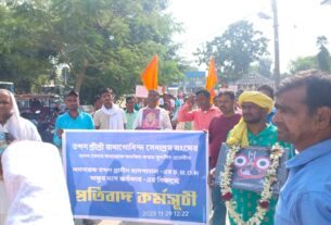 উত্তর দিনাজপুর : ———-গাঢ় আকর্ষণীয় রঙ এবং সারাবছর ভালো ফলনের জন্য বেনারসী বেগুন চাষে ঝুঁকছেন চাষীরা। জেনে নিন এই বেনারসী বেগুন চাষের পদ্ধতি, ও এই বেগুনের বিশেষ বৈশিষ্ট্য। লম্বা ও শাখা প্রশাখা যুক্ত সরু অধিক ফলনশীল বেনারসী বেগুন ইতিমধ্যে উত্তর দিনাজপুর জেলার বিভিন্ন গ্রামেগঞ্জে চাষ শুরু হয়েছে। দেখতে যেমন আকর্ষণীয় খেতে তেমন সুস্বাদু ও দামও হাতের নাগালে। মাত্র ২০ টাকা থেকে ২৫ টাকা দামে কেজি দরে বাজারে বিক্রি হয় এই বেনারসী জাতের বেগুন। উচ্চ ফলনশীল ও তাড়াতাড়ি ফল দেওয়ায় এই বেনারসি বেগুন চাষে ঝুঁকছেন চাষীরা। এই বেগুন চাষের ব্যাপারে কৃষি বিশেষজ্ঞ বীরেন দেবশর্মা জানান বেনারসী জাতের বেগুন গাছে কাঁটা তেমন নেই। এছাড়া গাছের উচ্চতা মাঝারি এবং শাখা-প্রশাখা যুক্ত। এই বেনারসী বেগুন বছরের যে কোন সময় চাষ করা যায়। তবে এই জাত মূলত ফেব্রুয়ারি ও মার্চ নাগাদ রোপণ করে বর্ষায় তোলা হয় আবার দ্বিতীয় জুন ও জুলাই মাসে বুনে আগস্ট ও সেপ্টেম্বর মাসে তুলতে হয়। এটেল ও দোআঁশ মাটি তে বেনারসী বেগুন চাষের সবথেকে উপযোগী। জমিতে কিছু সার প্রয়োগ করলেই এই বেগুনের ভালো ফলন পাওয়া যায়। তবে এই বেগুনে মাঝে মাঝে রোগ পোকার আক্রমণ বৃদ্ধি পায় সেক্ষেত্রে জমি তৈরির সময় জমিতে পচা গোবর সার, নাইট্রোজেন, পটাশ , ফসফেট সহ বিভিন্ন ধরনের সার মিশিয়ে দিয়ে জমি তৈরি করে তারপরেই সেই জমিতে বেগুনের বীজ লাগাতে হয়। বীজ লাগানোর তিন থেকে চার মাস পরেই এই বেগুন তোলা যায়।