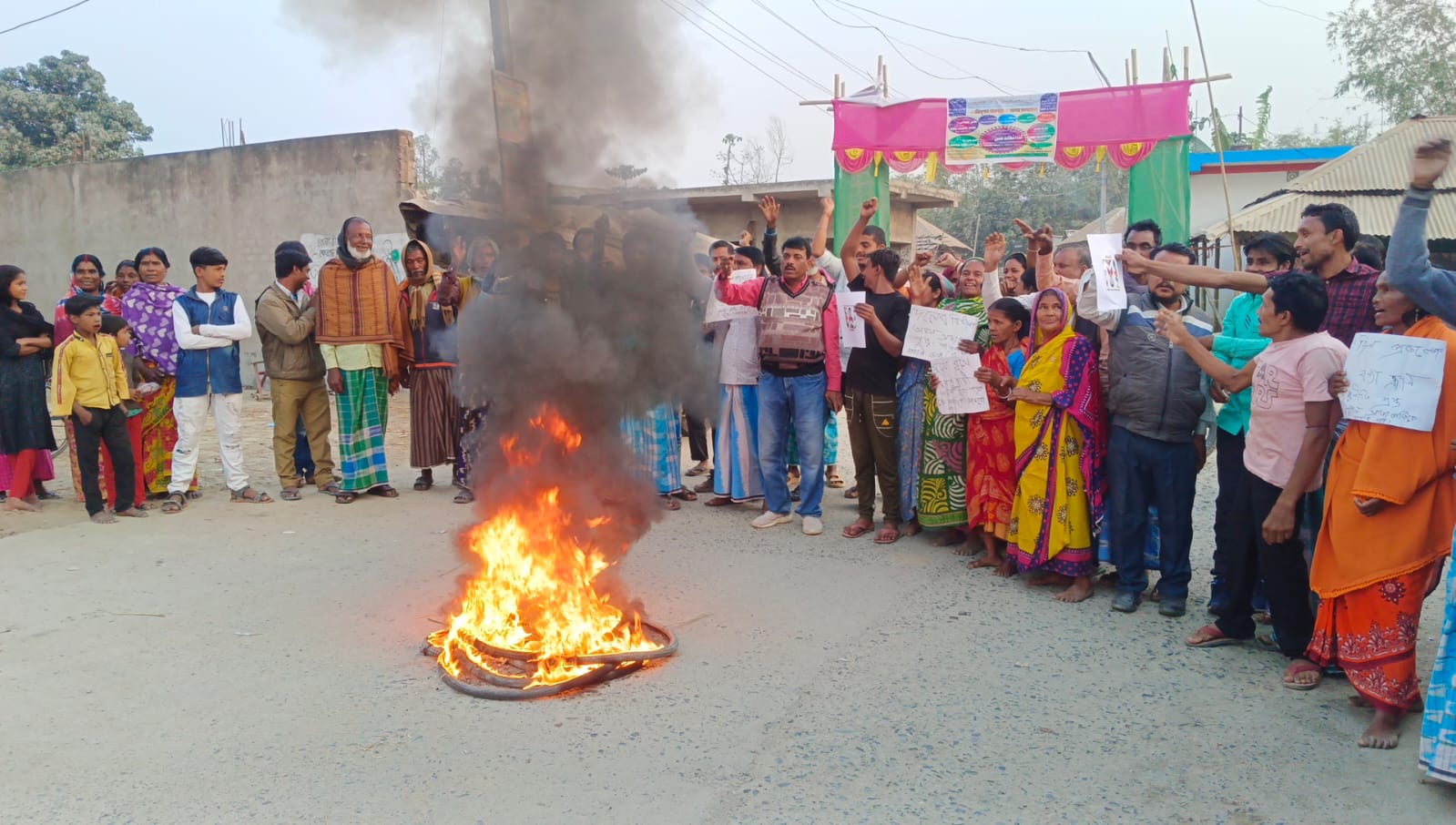 করছেন না।মালদা জেলার চাঁচল বিধানসভার কুশিদা অঞ্চলে কোনমতেই তৃনমূলের গোষ্ঠী কোন্দল মিটছে না।পঞ্চায়েত নির্বাচনের দিনক্ষণ যতই এগিয়ে আসছে ততই উত্তপ্ত হয়ে ওঠছে কুশিদা গ্রাম পঞ্চায়েত।কুশিদা গ্রাম পঞ্চায়েতের উপ প্রধান মহম্মদ নুর আজম অঞ্চল সভাপতি হতেই বুথে বুথে শুরু হয়েছে বিক্ষোভ।বৃহস্পতিবার অঞ্চল সভাপতি নুর আজমের বিরুদ্ধে একাধিক দুর্নীতির অভিযোগ তুলে রাস্তায় টায়ার জ্বালিয়ে ও ছবিতে প্রকাশ্যে আগুন ধরিয়ে বিক্ষোভ দেখালেন হুসেনপুর বুথের শতাধিক তৃনমূল কর্মী।