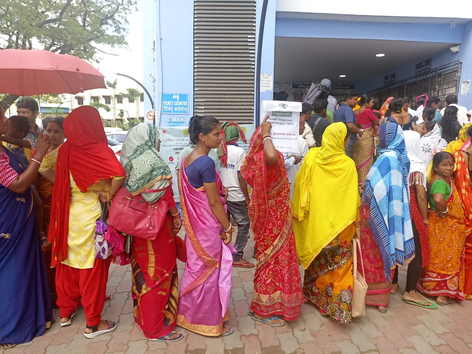 ঘন্টার পর ঘন্টা রোদে দাড়িয়ে থাকার পর মিলছে বহি:বিভাগে চিকিৎসা পরিষেবার পাবার টিকিট।এনিয়ে ক্ষোভ বাড়ছে গঙ্গারামপুর সুপার স্পেশালিটি হাসপাতালে আসা মানুষজনের।
