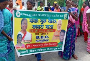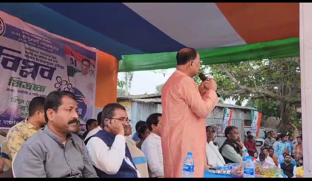 বালুরঘাট, ২৪ মার্চ ——-—– ৪০ হাজারের লক্ষ্যমাত্রা! বিধায়ককে সঙ্গে নিয়ে রবিবাসরীয় ছুটির দিনে কুমারগঞ্জে জোর ভোট প্রচার তৃণমূল প্রার্থীর। উচ্ছ্বাস দলীয় নেতাকর্মীদের। রবিবার সকাল সকাল মন্দিরে পুজো দিয়ে কুমারগঞ্জের বিস্তীর্ণ অঞ্চল জুড়ে একের পর এক সভা করে দাপিয়ে বেড়ান তৃণমূল প্রার্থী বিপ্লব মিত্র। যেখান থেকে জেলার যুবক যুবতীদের কর্মসংস্থানের দিশা নিয়ে বুনিয়াদপুরের ওয়াগন ফ্যাক্টরী চালু না হওয়া নিয়ে যেমন একদিকে সুকান্ত কে বিঁধেছেন, তেমনি অন্যদিকে কর্মীদের উপর ভোটের ব্যবধানের লক্ষ্যমাত্রাও বাড়িয়েছেন। আর যা নিয়ে প্রার্থী বিপ্লব মিত্রকে কে ঘিরে যথেষ্টই উচ্ছ্বাস লক্ষ্য করা গেছে তৃণমূল নেতা কর্মীদের মধ্যে। প্রসঙ্গত, বালুরঘাট লোকসভা কেন্দ্রের অন্তর্ভুক্ত সাতটি বিধানসভার মধ্যে কুমারগঞ্জ বিধানসভা কেন্দ্রটি ঘাসফুলের অন্যতম শক্ত ঘাঁটি হিসেবেই চিহ্নিত। যেখান থেকে শুধুমাত্র বিধানসভা নির্বাচনই নয়, লোকসভা নির্বাচনেও তৃণমূল বিরোধীদের যথেষ্টই বেগ পেতে হয়। যার কারন হিসাবে অনেকেই মনে করেন সংখ্যালঘু অধ্যুষিত এলাকার একচেটিয়া ভোট ব্যাঙ্ক। ২০১৯ সালে বালুরঘাট লোকসভা কেন্দ্রটিতে বিজেপি প্রার্থী সুকান্ত মজুমদার জয়লাভ করলেও তৃণমূল প্রার্থী অর্পিতা ঘোষ কুমারগঞ্জ বিধানসভায় ১৮ হাজার ৭৫৯ ভোটে এগিয়ে ছিলেন। এরপর ২০২১ এর বিধানসভা নির্বাচনে ওই কেন্দ্রে কার্যত ধরাশায়ী হয়েছিল বিজেপি। প্রায় ৩০ হাজার ভোটের ব্যবধানে তৃণমূল প্রার্থী তোরাব হোসেন মন্ডল হারিয়ে দিয়েছিলেন সেখানকার বিজেপি প্রার্থীকে। যে নির্বাচনের পরেই কুমারগঞ্জ বিধানসভা কেন্দ্রে বিজেপির এক কঙ্কালসার সাংগঠনিক চেহারা সামনে এসেছিল। বিজেপির সেই সাংগঠনিক দুর্বলতাকে হাতিয়ার করেই সংখ্যালঘু অধ্যুষিত এলাকার ভোটব্যাঙ্ককে পকেটে পুরতে লোকসভা নির্বাচনের আগে মরিয়া হয়ে উঠেছে তৃণমূল প্রার্থী। এদিন সে হিসাবেই এলাকায় ভোট প্রচারে গিয়ে নেতা কর্মীদের ভোটের ব্যবধানের সংখ্যা বেঁধে দিয়েছেন বিপ্লব মিত্র।