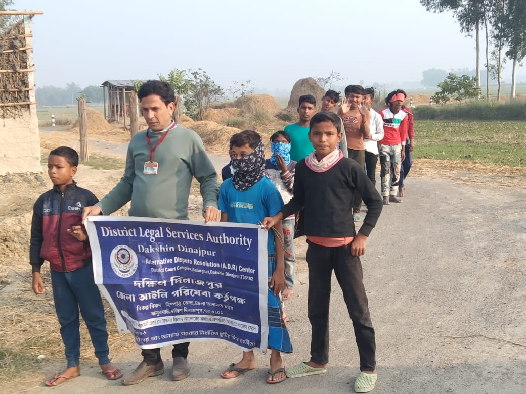 দক্ষিণ দিনাজপুর –—————-— জেলা আইনি পরিষেবা কর্তৃপক্ষ এর নির্দেশে বাল্য বিবাহ মুক্ত জেলা করতে প্রশাসনের উদ্যোগ কে পুরোপুরি সহযোগিতা ও প্রচার করার এবং মানব পাচার সম্পর্কে সচেতন করার নির্দেশ দেন।