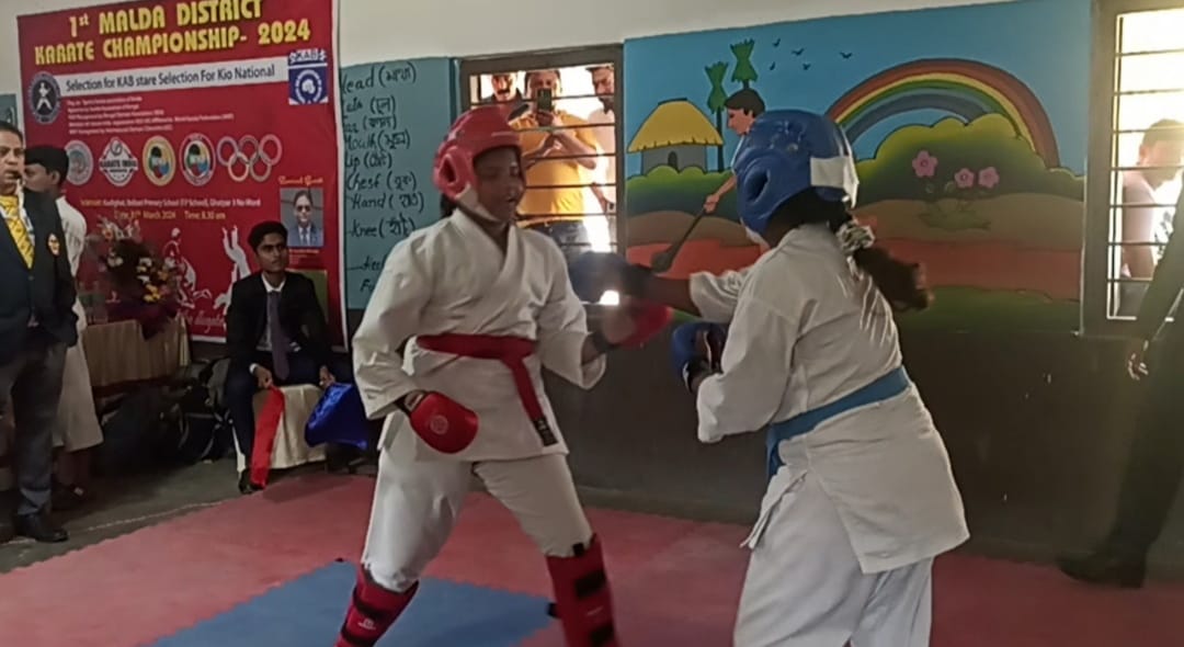 গঙ্গারামপুর,৩১ মার্চ :—————–— দক্ষিণ দিনাজপুর জেলা ক্যারাটে ত্র্যাসোসিয়েশনের পক্ষ থেকে জেলা চ্যাম্পিয়ান শিপ অনুষ্ঠিত হল। রবিবার চ্যাম্পিয়ান শিপের আয়োজন করা হয় গঙ্গারামপুর শহরের কাদিহাট অবৈতনিক প্রাথমিক বিদ্যালয়ে। প্রদীপ প্রজ্জ্বলনের মধ্যদিয়ে এদিন টুর্নামেন্টের সূচনা করা হয়। এদিনের টুর্নামেন্টে হাজির ছিলেন জেলা ক্যারাটে ত্র্যাসোসিয়েশনের সম্পাদক রঘুনাথ পাল,বেঙ্গল ক্যারাটে ত্র্যাসোসিয়েশনের প্রতিনিধি প্রকাশ থাপা,শিক্ষক অশোক কুমার মন্ডল আরো অনেকে। জেলার বিভিন্ন প্রান্তের প্রায় ৮৬ জন প্রতিনিধি এদিন অংশ নিয়েছিল। টুর্নামেন্ট শেষে প্রতিযোগীদের হাতে মানপত্র তুলে দেওয়া হয়।