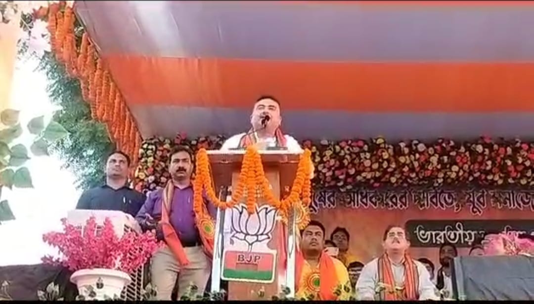 এদিন বক্তব্য রাখতে গিয়ে রাজ্যের বিরোধী দলনেতা শুভেন্দু অধিকারী বলেন, পরিযায়ী শ্রমিক এখন ৪৫ লক্ষ। বামফ্রন্টের সময় এই সংখ্যা ছিল ৫ লক্ষ। বেশীর ভাগ এই পরিযায়ী শ্রমিকদের মধ্যে সংখ্যালঘুরা আছেন। প্রধানমন্ত্রী আবাস যোজনাতে পশ্চমবঙ্গকে কেন্দ্র ৫০ লক্ষ বাড়ি দিয়েছে। তৃণমূলের নেতারা বাড়ি নিয়ে নিয়েছে। ১০০ দিনের কাজে সব থেকে বেশী দুর্নীতি হয়েছে এই মালদা জেলাতে। এই চোরদের তাড়াতে হবে। কেন এই চোরদের ভোট দেবেন। যাঁরা কাঁটা তারের বেড়া টপকে ঢুকেছে তাঁদেরকে কাঁটাতারের ওপাশের যেতে হবে। বিদেশের মাটিতে প্রধান মন্ত্রীকে পায়ে হাত দিয়ে প্রণাম করছে। কৃষক পরিবারের টাকা আটকে দিয়েছে এই রাজ্য সরকার। মাধ্যমিকে ছাত্র ছাত্রীর সংখ্যা কমছে আর মদের দোকানের সংখ্যা বাড়ছে। ডিয়ার লটারি কাটতে কাটতে এই রাজ্যের মানুষকে ভিখারি করে দিয়েছে। অভিষেককে মহম্মদ বিনতুঘলকের সঙ্গে তুলনা করে শুভেন্দু অধিকারী বলেন, জনজোয়ারের নামে কোটি কোটি টাকা খরচ হচ্ছে। মুসলিমদের মধ্যে এনআরসির ভয় দেখাচ্ছে। কুরমিদের মধ্যে লড়াই লাগাচ্ছে মমতা ব্যানার্জী। রামনবমীর দিন গোলমাল হয়েছে মমতা ব্যানার্জীর জন্যে। এই রাজ্যে কোনো চাকরি নেই। পশ্চমবঙ্গকে বাঁচাতে হবে। ডবল ইঞ্জিনের সরকার এই রাজ্যে প্রতিষ্ঠা করতে হবে। সিপিএমের ফাঁদে পা দেবেন না। সিপিএমের আমলে ওরা চাকরি বিক্রি করে ছিল। মমতা ব্যানার্জীকে আমি প্রাক্তন করব।
