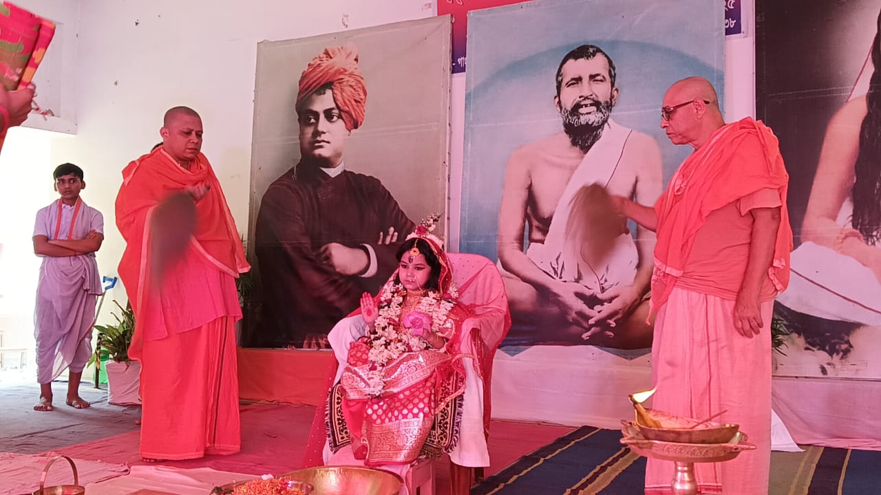 বামনগোলা:—-– বাসন্তী পূজা উপলক্ষে মালদহের বামনগোলা ব্লকের গাঙ্গুরিয়া শ্রী শ্রী সারদা তীর্থম আশ্রমে কুমারী পূজা অনুষ্টিত হলো মঙ্গলবার।মঙ্গলবার বাসন্তীর পুজোর মহা অষ্টমী তিথি সেই উপলক্ষে বামনগোলা ব্লকের গাঙ্গুরিয়া আশ্রমে কুমারী পুজোর আয়োজন করা হয়, আশ্রমের সম্পাদক মহারাজ স্বামী আত্মপ্রানানন্দজী মহরাজ,জানান এই মিশনে ২৪ বছর ধরে বাসন্তী দুর্গাপুজা ভিন্ন নিয়ম রীতি মেনে হয়ে আসছে। আজ মহা অষ্টমী উপলক্ষে কুমারী পুজো করা হয় মালদার গয়েশপুর এলাকার মৃত্যুঞ্জয় ব্যানার্জির ছয় বছরের কন্যা মৃত্তিকা ব্যানার্জিকে কুমারী রূপে পূজা করা হয়।এই পুজোতে বহু ভক্তের ঢল দেখা গিয়েছে সকাল থেকেই। ও আশ্রমে বিভিন্ন এলাকা থেকে আসা ভক্ত দের মধ্যে পুজো শেষে প্রসাদ বিতরণ করা হয়। এছাড়াও বিকেল বেলা সন্ধিপূজো রয়েছে।