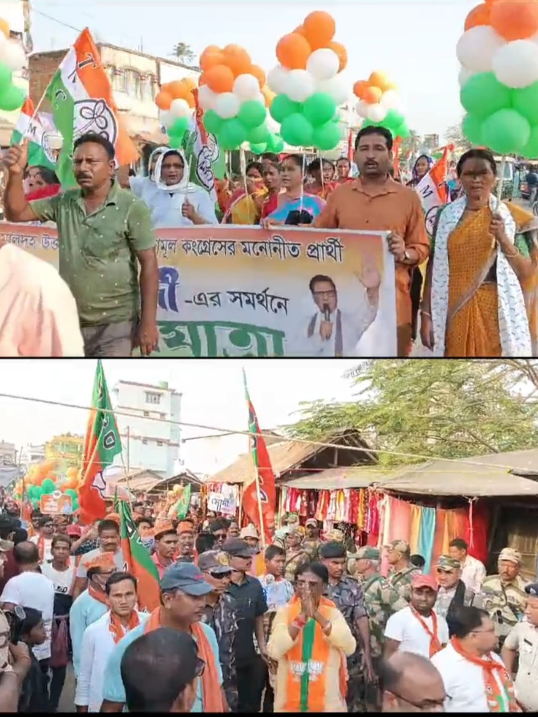 বামনগোলা: —————–————-আসন্ন লোকসভা নির্বাচন হাতে গোনা আর কয়েকদিন বাকি । এই বৈশাখের চাঁদি ফাটা রোদে বিভিন্ন রাজনৈতিক দলের কর্মী থেকে প্রার্থী সবাই ব্যস্ত ভোট প্রচার করতে।বামন গোলা ব্লকের পাকুয়াহাট যা গোটা মালদার মধ্যে ঐতিহ্যবাহী হাট । এই সাপ্তাহিক হাটে তৃণমূল ও বিজেপি ব্যস্ত ভোট প্রচার করতে।সেই পরিপ্রেক্ষিতে আজ মঙ্গলবার বিভিন্ন রাজনৈতিক দলের মহা মিছিল প্রথমে তৃণমূল কংগ্রেসের পক্ষ থেকে মিছিল বের করা হয়। ডাকবাংলা ডেলি মার্কেট থেকে রেলি বের করে গোটা পাকুয়াহাট পরিক্রমা করে পাকুয়াহাট দলীয় কার্যালয় এসে শেষ হয়। মিছিলে দেখা গেল না তৃণমূল কংগ্রেসের প্রার্থী প্রসূন ব্যানার্জিকে-।অপরদিকে পিছিয়ে নেই বিজেপিও এদিন প্রথমে তারা বিজেপি কার্যালয় থেকে র্যালি বের করে যা গোটা পাকুয়াহাট পরিক্রমা করে পাকুয়াহাট বিজেপি দলীয় কার্যালয় শেষ হয় ।