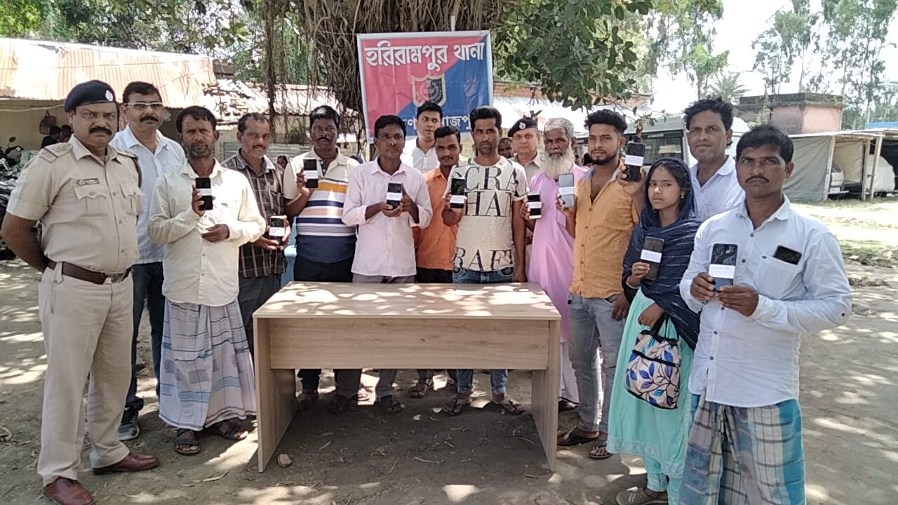 হরিরামপুর 23 জুলাই দক্ষিণ দিনাজপুর :—–—- দক্ষিণ দিনাজপুর জেলা পুলিশ সুপারের নির্দেশ পেতেই হরিরামপুর থানার আইসি অভিষেক তালুকদার তার থানার অফিসারদের দিয়ে একটি ছোট্ট অনুষ্ঠান করে মোবাইল গুলো তুলে দেওয়া হয়। অনুষ্ঠানে উপস্থিত ছিলেন হরিরামপুর থানার আইসি অফিসের তালুকদার, বড়বাবু শুভঙ্কর চক্রবর্তী, থানার অফিসার শরৎচন্দ্র দাস, অসীম বাবুসহ আরো অনেক অফিসারেরা। চুরি যাওয়া মোবাইল ফোন পেয়ে হরিরামপুর থানা পুলিশের কাজকে সাধুবাদ জানিয়েছেন মোবাইল প্রকৃত মালিকসহ হরিরামপুরবাসী। হরিরামপুর থানা সূত্রে জানা গেছে তাদের এমন অভিযান লাগাতে চলতে থাকবে। ফোন ফেরত পেয়ে প্রকৃত মালিকেরা হরিরামপুর থানা পুলিশের কাজকে সাধুবাদ জানিয়েছেন।