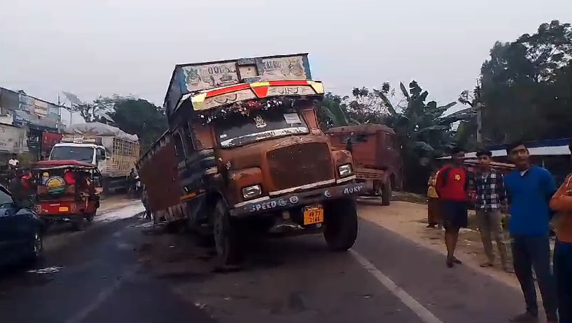গঙ্গারামপুর, ২৫ নভেম্বর —-– এক বেপরোয়া মালবোঝাই লরির ধাক্কায় চাঞ্চল্যকর ঘটনা ঘটল দক্ষিণ দিনাজপুরের গঙ্গারামপুর থানার কাদিঘাট এলাকায়। সোমবার বিকেলে লরিটি প্রথমে একটি গাড়িকে ধাক্কা মারার পর নিয়ন্ত্রণ হারিয়ে আরও দুটি গাড়িকে ধাক্কা মেরে ৫১২ জাতীয় সড়কের উপর উলটে যায়। ঘটনার জেরে মুহূর্তেই লরি বোঝাই মালপত্র ছড়িয়ে পড়ে, এবং রাস্তা অবরুদ্ধ হয়ে যায়।