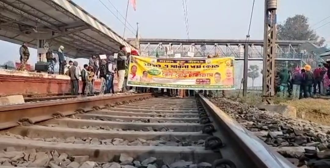 মালদাঃ—মালদহে আদিবাসী সেঙ্গেল অভিযানের রেল অবরোধ কর্মসূচি।শনিবার পুরাতন মালদার আদিনা স্টেশনে আদিবাসী সিঙ্গেল অভিযানের কর্মী সমর্থকরা রেল রোকো অভিযানে সামিল। ছয় দফা দাবি দাওয়া নিয়ে এই রেল অবরোধ কর্ম সূচি পালন করে । ঘটনাস্থলে পরিস্থিতি সামাল দিতে রাজ্য ও রেল পুলিশের বিশাল বাহিনী মোতায়েন