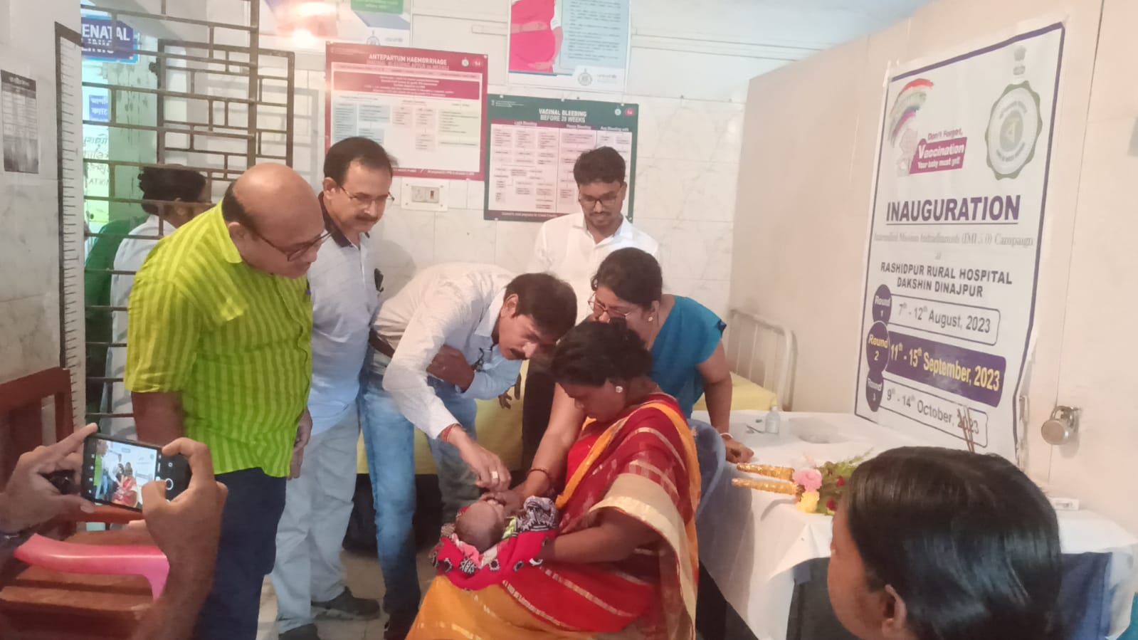 জেলার শিশু এবং অন্তঃস্বত্ত্বা মায়েদের ভ্যাকসিনের আওতায় আনতে উদ্যোগী দক্ষিণ দিনাজপুর জেলা স্বাস্থ্য দপ্তর। তাই নিয়মিত টিকাকরণ কর্মসূচি বহির্ভূত বিশেষ ক্যাম্পের আয়োজন করা হয়েছে। এক রকম দুয়ারে সরকারের ধাঁচে শুরু হয়েছে কর্মসূচি ‘ইন্টেসিফাইড মিশন ইন্দ্রধনুষ’। শহর থেকে প্রত্যন্ত গ্রামে খোলা হচ্ছে অস্থায়ী ভ্যাকসিনেশন ক্যাম্প। নিয়ম করে মাসে ৬ দিন স্বাস্থ্য দপ্তরের কর্মীরা পৌঁছে যাচ্ছেন বিভিন্ন এলাকায়। সেই সমস্ত এলাকায় যেখানে অন্তঃস্বত্ত্বা মা অথবা সদ্যোজাত শিশুরা টিকা নেননি, তাঁদের কাছে। প্রশাসনের লক্ষ্য একশো শতাংশ শিশু এবং মাকে টিকার আওতায় আনা। ৭ অগাষ্ট থেকে ১২ অগাষ্ট পর্যন্ত প্রথম রাউন্ডের মিশন ইন্দ্রধনুষ প্রথম রাউন্ড করা হয়েছে। এবারে মিশন ইন্দ্রধনুষ সেকেন্ড রাউন্ডের ভ্যাকসিনেশন ক্যাম্পের উদ্বোধন করা হলো রশিদপুর গ্রামীণ হাসপাতালে। এদিন সেখানে উপস্থিত ছিলেন বংশীহারী ব্লকের জয়েন্ট বিডিও মানবেন্দ্র সাহা , পঞ্চায়েত সমিতির সভাপতি গণেশ প্রসাদ , রশিদপুর গ্রামীণ হাসপাতালের মেডিকেল অফিসার আব্দুল রাজ্জাক দালাল, সাব সেন্টারের কর্মী সহ অন্যান্য অধিকারীকরা।