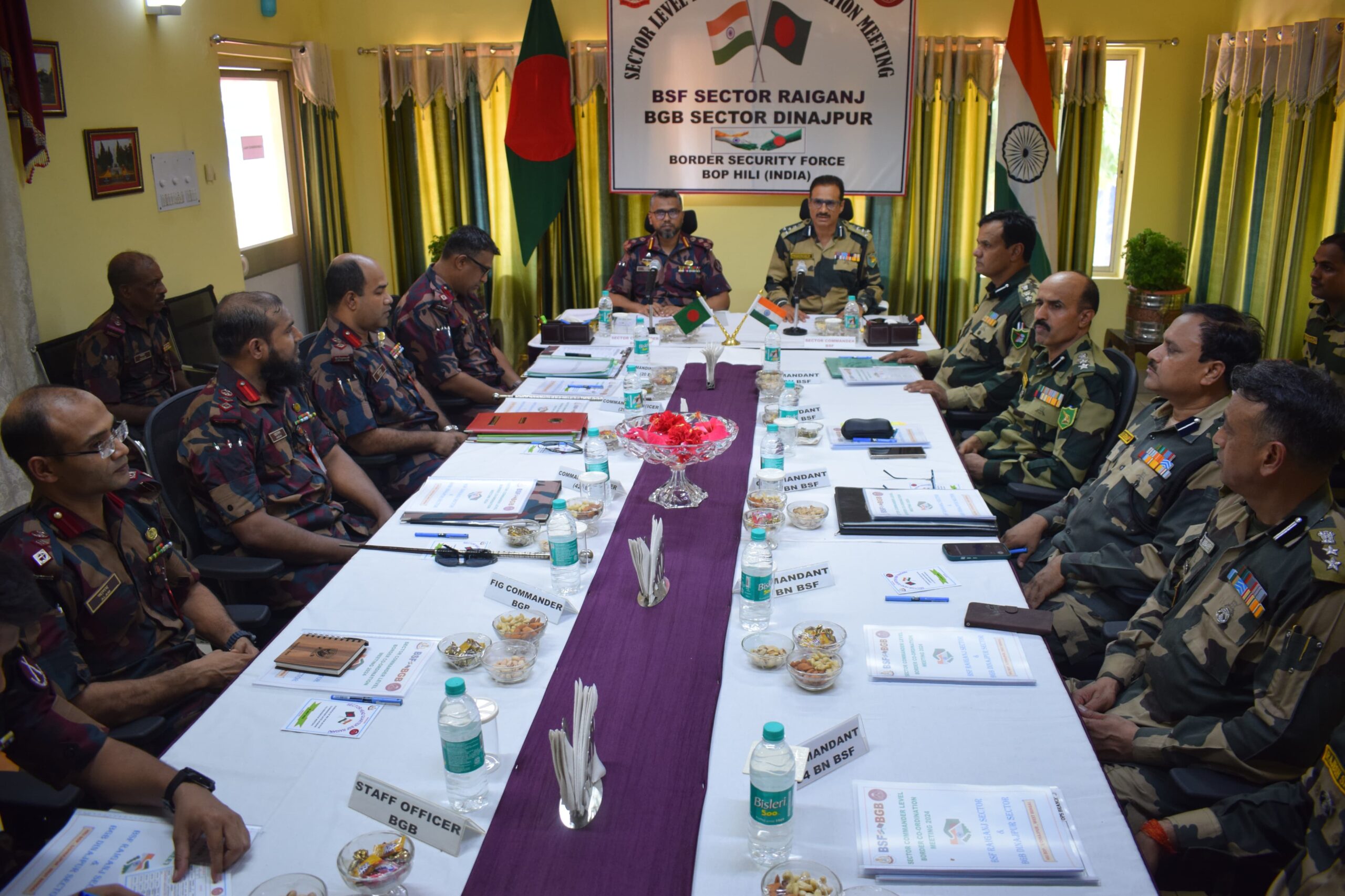 বালুরঘাট, ১৫ জুলাই —–— আন্তর্জাতিক একাধিক জরুরী বিষয় নিয়ে হিলিতে বৈঠক বিএসএফ ও বিজিবি-র। সোমবার দক্ষিণ দিনাজপুর জেলার হিলি চেকপোস্টে অনুষ্ঠিত হয় এই বৈঠক। যেখানে ভারতীয় প্রতিনিধিদের তরফে নেতৃত্ব দেন বিএসএফ-এর রায়গঞ্জের সেক্টর কমান্ডার ডিআইজি মোহিন্দর সিং। অন্যদিকে বাংলাদেশের প্রতিনিধিদের নেতৃত্ব দেন বর্ডার গার্ড বাংলাদেশের দিনাজপুরের সেক্টর কমান্ডার পিএসসি মহম্মদ অরিফুল হক। জানা গেছে এদিনের এই বৈঠকে বাংলাদেশের অপরাধীদের দ্বারা বিএসএফ কর্মী ও ভারতীয় নাগরিকদের উপর হামলা বন্ধ সহ একাধিক জরুরী বিষয় নিয়ে আলোচনা হয়েছে। মূলত ভারত বাংলাদেশের হিলি আন্তর্জাতিক সীমান্ত এলাকায় মানবাধিকার বজায় রাখা, যেকোন হিংসা রোখা, দুই দেশের সীমান্ত প্রহরীদের মধ্যে তালমিল বজায় রাখা, সীমান্ত এলাকায় বাসবাসকারীদের জনসচেতনতা বৃদ্ধির উপরে জোর দেওয়া সহ একাধিক বিষয় আলোচিত হয়েছে এদিন। একইসাথে উভয় দেশের সীমান্তরক্ষী বাহিনী সীমান্ত এলাকায় পাচারচক্র বন্ধে সম্মিলিতভাবে প্রয়াস চালাবে, যা নিয়েও এদিনের বৈঠকে বিস্তর আলোচনা হয়েছে বলে জানানো হয়েছে বিএসএফের তরফে।