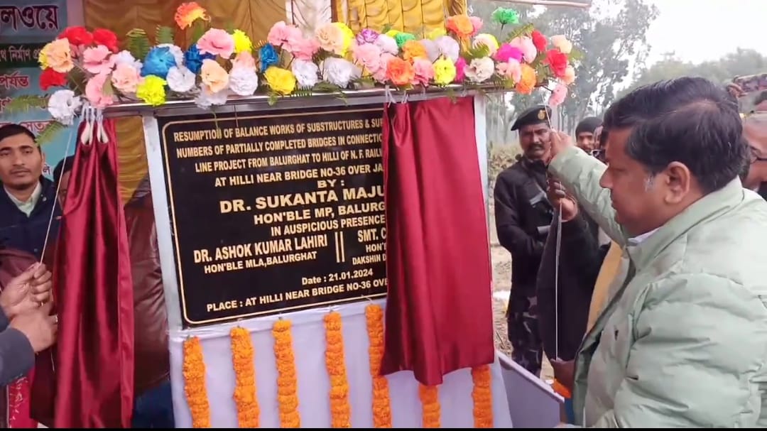 বালুরঘাট, ২১ জানুয়ারী ——–— তেরো বছর আগে হিলিতে তৈরি হওয়া রেলব্রীজের পুনরায় শিলান্যাস নিয়ে বিতর্ক। জোর চর্চা গোটা দক্ষিন দিনাজপুরে। শাসকদলের তোপের মুখে বালুরঘাটের সাংসদ। রবিবার দুপুরে হিলির মেরা আপ্তৈরে রেলব্রীজের একটি শিলান্যাস অনুষ্ঠান কে ঘিরে তৈরি হয়েছে এমনই বিতর্ক। যেখানে বালুরঘাট লোকসভা কেন্দ্রের সাংসদ সুকান্ত মজুমদার ছাড়াও উপস্থিত ছিলেন উত্তর পূর্ব রেলের ডি আর এম সুরেন্দ্র কুমার, তপনের বিধায়ক বুধরাই টুডু সহ রেলদপ্তরের একগুচ্ছ কর্মকর্তারা।