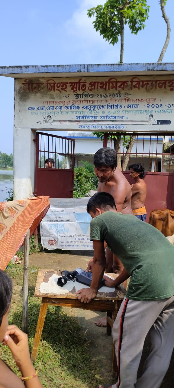 গঙ্গারামপুর,বন্যার জল পার হয়ে বানভাসিদের কাছে রে রেশনের চাল,আটা সহ বিভিন্ন জিনিস পৌঁচ্ছে দিলেন গঙ্গারামপুরের রেশন ডিলাররা।