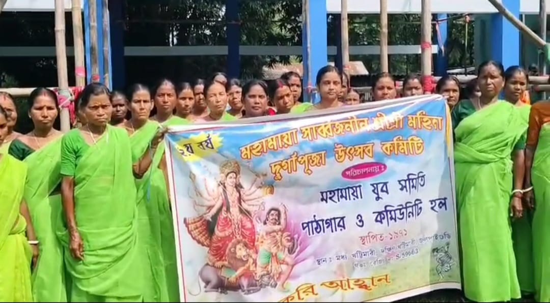 কালিয়াগঞ্জের দক্ষিণ আখানগর বারোয়ারী দূর্গাৎসব কমেটি পূজার প্রধান আকর্ষণ দেবী দশভূজা