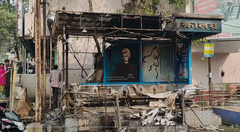 শটসার্কিট নাকি ভবঘুরেদের দৌরাত্ম্য ? বালুরঘাটের থানা মোড়ে আগুনে ভস্মীভূত যাত্রী প্রতীক্ষালয় কে ঘিরে রহস্য ঘনীভূত